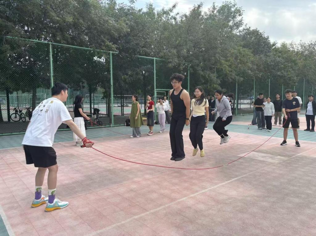 活动当日,天气晴好,为运动会营造了极佳的氛围。本次趣味运动会设置了多个妙趣横生的项目,包括踢毽子、连点成线、分组跳绳三个项目,涵盖了智力、体力与团队协作等多方面的考验。“踢毽子”环节里,大家环形站位,毽子在彼此间灵活传递,大家轻松自如地传递着毽子,时不时还会有人展示出高难度动作,引得周围观众阵阵喝彩,欢笑声回荡在整个活动场地。在“连点成线”项目中,同学们需要快速分析局势、制定策略,不仅要对自身的反应速度有精准把控,还得时刻关注团队的整体进度,彼此配合,共同完成挑战,现场不断传出大家热烈的讨论声和欢呼声。“分组跳绳”则是默契与节奏的较量,摇绳的同学稳稳地掌控着速度,跳绳的队员们步伐轻盈,身姿矫健,展现出极高的团队协作水平,绳子在空中快速飞舞,各小组队员们默契配合,在摇绳的节奏里跃动出青春活力。