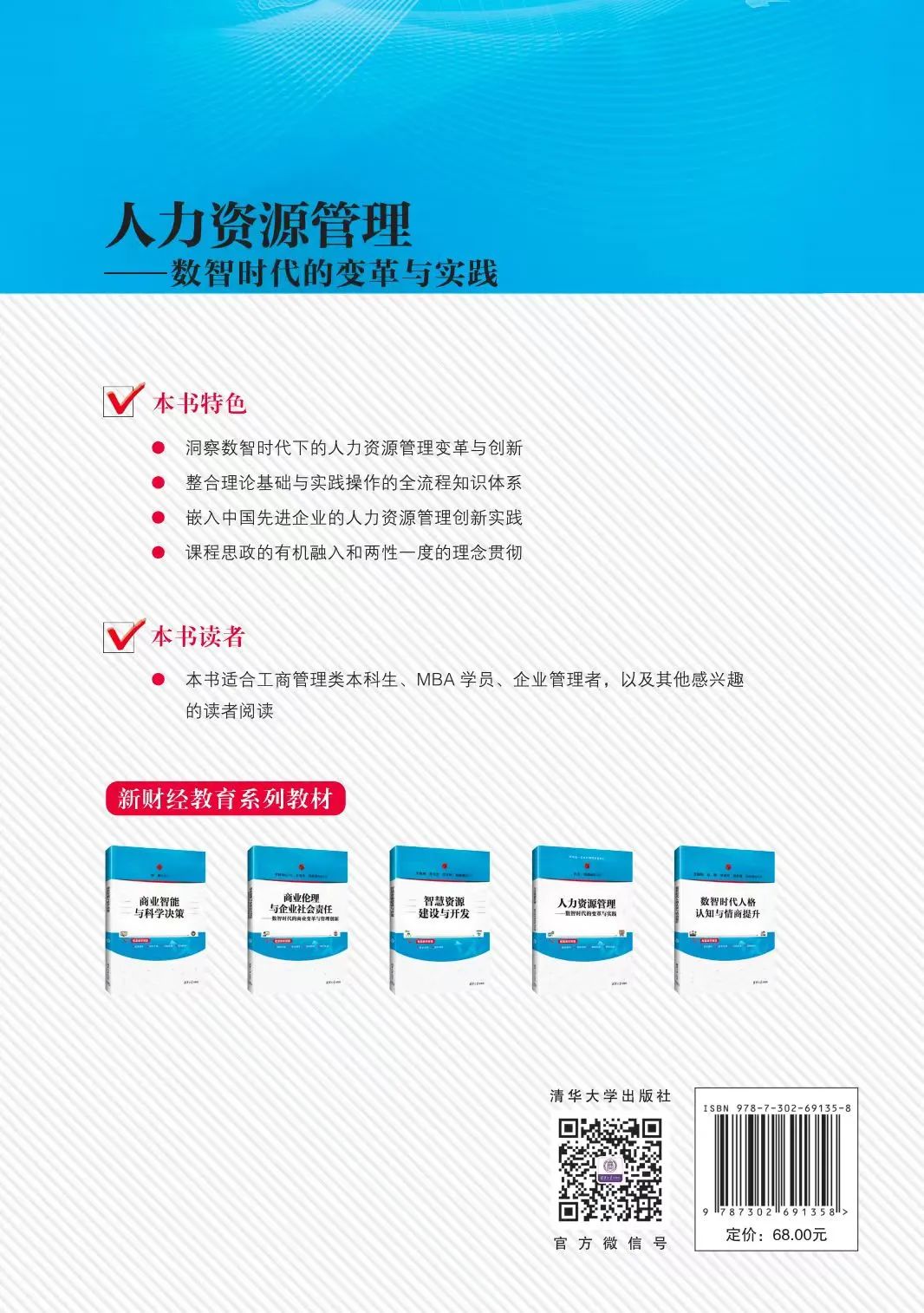 近日,由许龙、郑伟波编著的《人力资源管理——数智时代的变革与实践》一书由清华大学出版社正式出版。该教材是bat365官方网站第二批“新财经教育系列教材”之一,也是bat365官网在推进新财经教育改革和教材体系建设方面取得的重要成果。