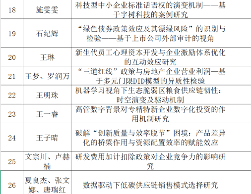 bat365官方网站第五届“研在工商”研究生学术论坛(2025)自2025年10月12日起公开征集学术论文,至2025年11月21日止,共征集到论文53篇。经专家审阅和专业评审团队讨论,有30篇论文入选本届论坛。现公布入选论文: