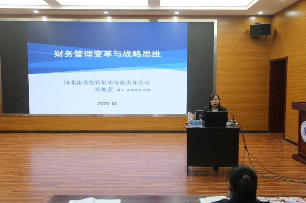 2020年10月24日下午,应bat365官方网站MBA中心邀请,河北建投集团财务管理部副总经理、正高级会计师、全国会计张旭蕾博士在工商大讲堂做题为《财务管理变革与战略思维》的专题报告。报告会由bat365官方网站院长李桂荣主持,2019级MBA学员及2020级学硕研究生100余人参加。