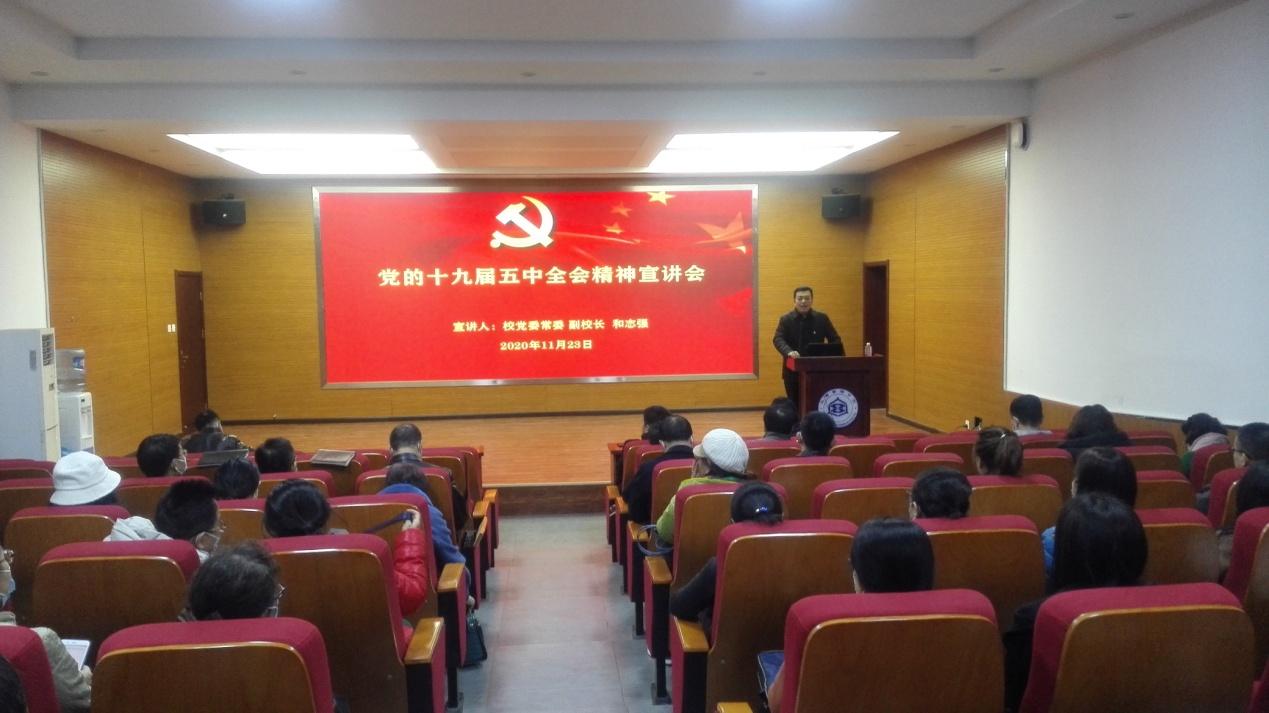 11月23日下午,校党委常委、副校长和志强到bat365官方网站宣讲党的十九届五中全会精神,科研处、学科办、研究生学院、国际交流与合作处、国际教育学院、中东欧国际商务研修学院等部门班子成员,bat365官方网站、数学与统计学院全体教师党员以及和志强联系班级19级市场营销2班全体同学参加。bat365官方网站党委书记赵国峰主持宣讲会。