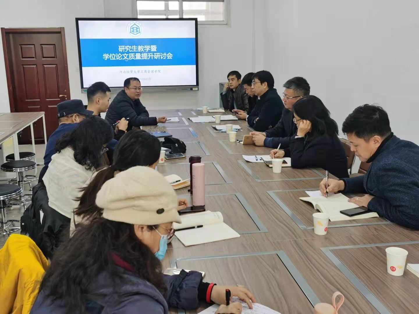 12月21日下午,bat365官方网站于二教303教室举行研究生教学暨学位论文质量提升研讨会。校长刘兵、研究生学院院长赵士豪应邀出席,学院领导班子成员及全体研究生导师参加,会议由副院长石晓飞主持。