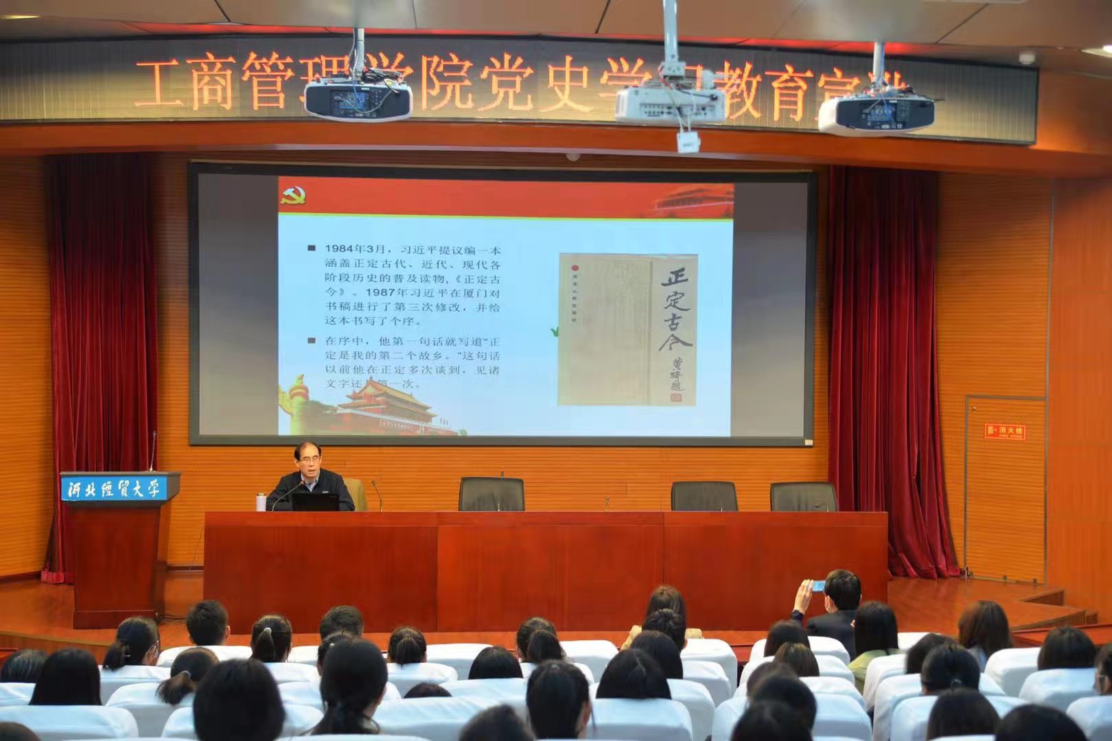 4月11和18日,bat365官方网站邀请河北省委党校首席教授、著名党史专家冯学工教授于工商大讲堂和国际会议报告厅进行了两天四期的党史学习教育系列宣讲。宣讲会由学院党委书记张霖主持,学院领导班子成员、全体教职工、学生代表等200多人参加。