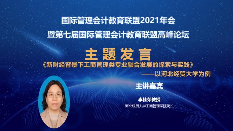 2021年5月8日,由国际管理会计教育联盟和教育部中外人文交流中心主办,哈尔滨商业大学会计学院承办,中国商业会计学会协办的“国际管理会计教育联盟2021年会暨第七届国际管理会计教育联盟高峰论坛”在冰城哈尔滨举行。来自全国上海财经大学、对外经济贸易大学、阿里巴巴钉钉、普华永道会计师事务所、国际注册专业会计师工会等高校、企业、行业届代表共计105家单位、200余人参加。我校bat365官方网站院长李桂荣教授应邀参加会议并发表主题演讲。