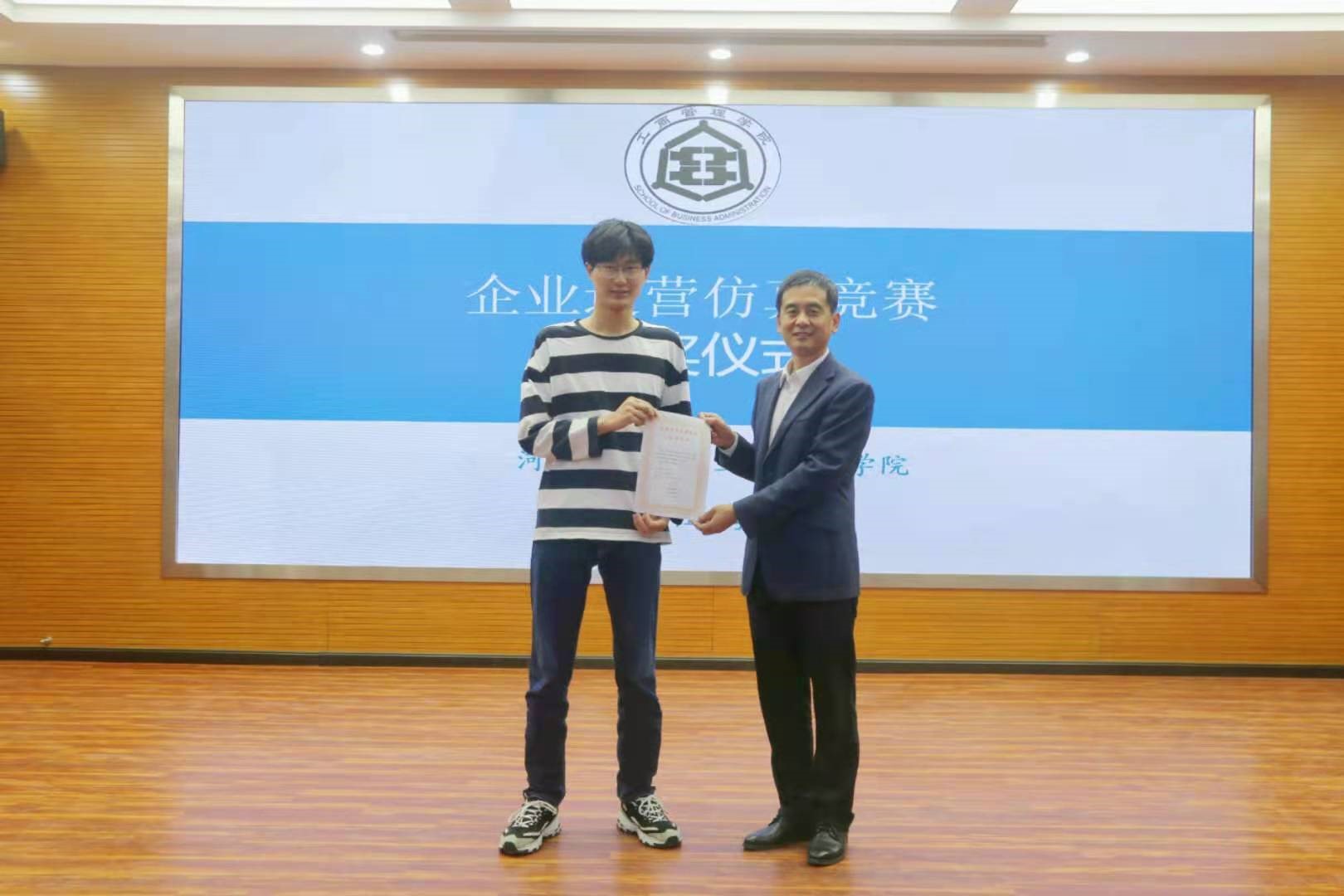 5月6日,bat365官网举行了学院“企业运营仿真”大赛颁奖仪式,院长李桂荣、副院长王胜洲参加仪式并向取得优异成绩的代表队颁发获奖证书。