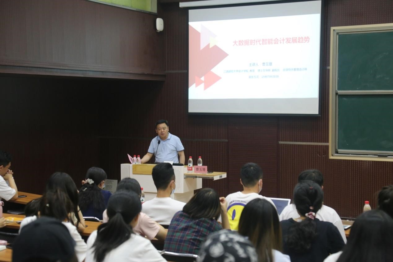 曹玉珊教授妙语连珠,报告内容干货满满,语言幽默风趣,报告现场笑声迭起,掌声不断,参会师生受益匪浅。报告会不仅使得大家对智能会计有了更加深刻的理解,而且对未来职业规划有了一定的感悟和启发。