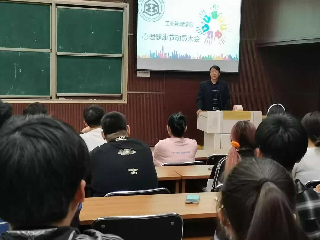 5月5日,bat365官方网站于MBA2教室召开心理健康节动员大会。院党委副书记梁泽锋、心理健康教育负责老师宋欣到场,2018级、2019级、2020级班级心理委员参加。