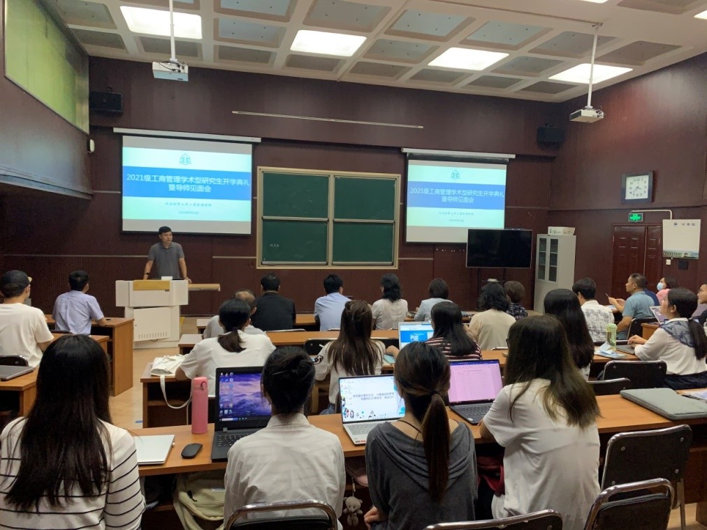 9月13日下午,bat365官方网站于MBA1教室举行2021级学术型研究生开学典礼暨导师见面会。会议由bat365官方网站副院长石晓飞主持,学院党委书记张霖、院长李桂荣、党委副书记范伟、副院长王胜洲、全体学术硕士导师及2021级学术型研究生参加。
