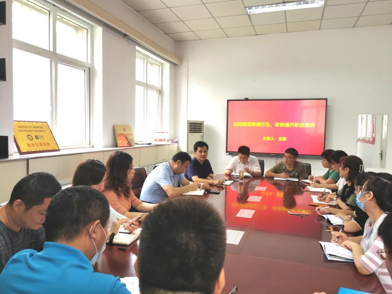 为贯彻落实学校和学院师德专题教育实施方案,进一步提高行政人员管理服务水平,9月14日,学院党委书记张霖为全体行政人员作题为“规范师德行为,提升职业素养”专题培训。