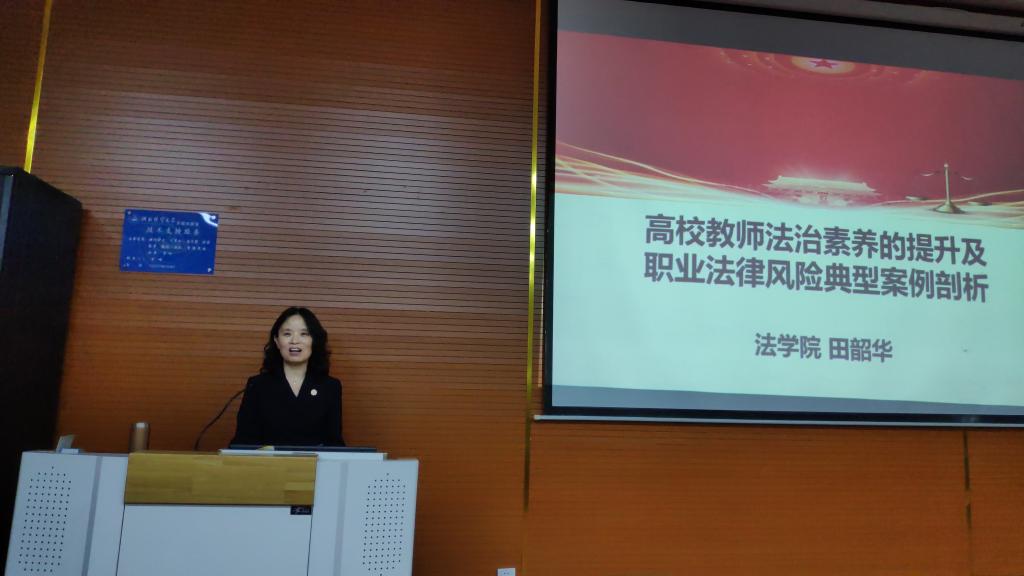 10月4日下午,bat365官方网站邀请法学院田韶华教授作题为“高校教师法治素养的提升及职业法律风险典型案例剖析”的学术讲座。讲座由院长李桂荣主持, 学院全体教师参加。
