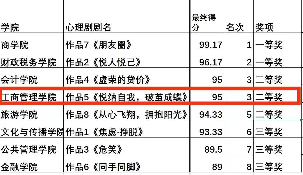 我校第十届校园心理剧大赛以“磨砺青春,我心向阳”为主题,历时数月,经学院演员选拔、学校初赛,bat365官网作品成功入围决赛。4月18日,决赛在校礼堂举行。经过激烈角逐,bat365官网作品《悦纳自我,破茧成蝶》荣获二等奖!