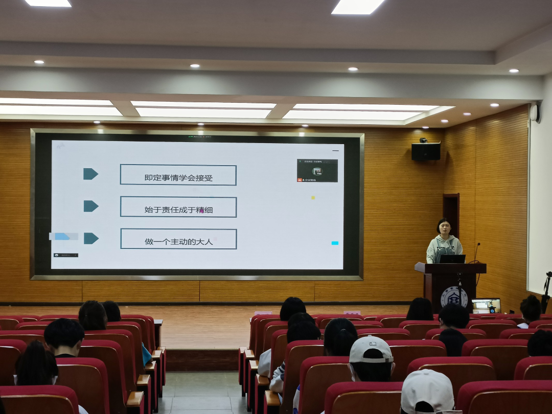 活动伊始,范伟代表学院预祝本次活动顺利开展。他表示,机会在青年人面前是无限的,鼓励同学们要抓住机会,做好自己的职业生涯规划。随后,高敏结合自己参军及大学四年的经历,详细为同学讲述做好职业生涯规划的重要性。她讲到,在大学学习中每个人都要对自己的学业负责,在确立好目标以后,要及时和自己的导师沟通并付出实际行动,这样才能一步步走向成功。最后的互动问答环节,同学们就如何确立职业生涯规划提出疑问,高敏为同学们进行详细解答。