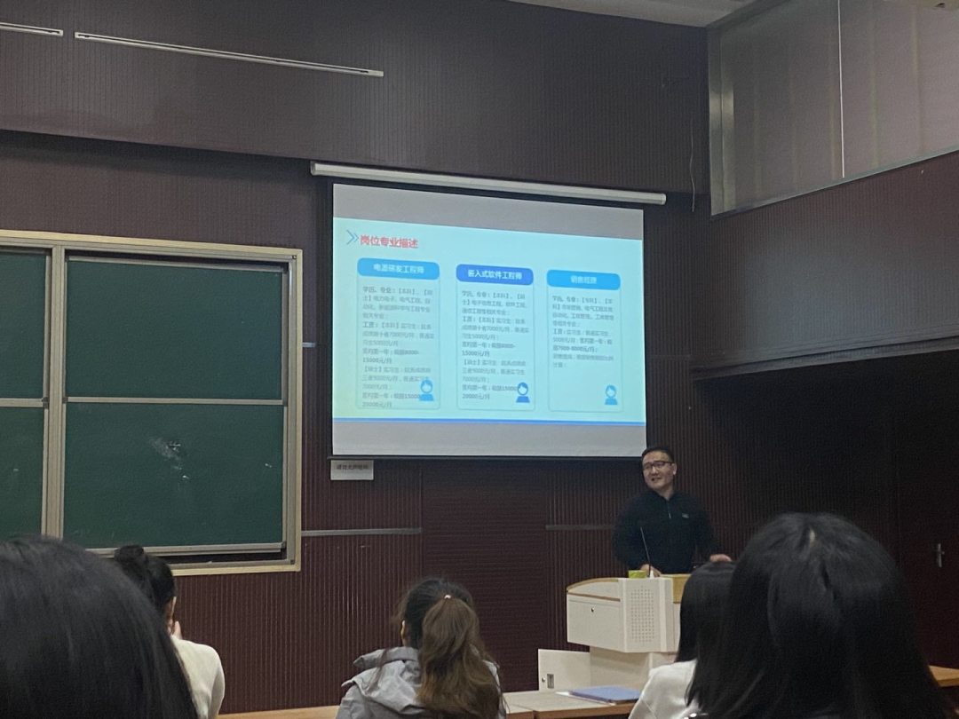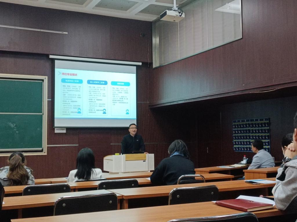 活动伊始,宣讲人向同学们简单介绍了公司的发展历程、企业文化以及从事的业务,并以播放本公司宣传片的形式,促使学生们更深入了解公司。随后,分别从职业发展与福利、需求岗位等方面,对公司进行全方位多角度的介绍,帮助企业和学生之间进行双向选择。最后,企业宣讲人提到公司的员工福利和人才发展通道,并进一步对企业的需求岗位和岗位选择进行描述,说明公司的面试流程及简历的投递方式,欢迎同学们踊跃报名。