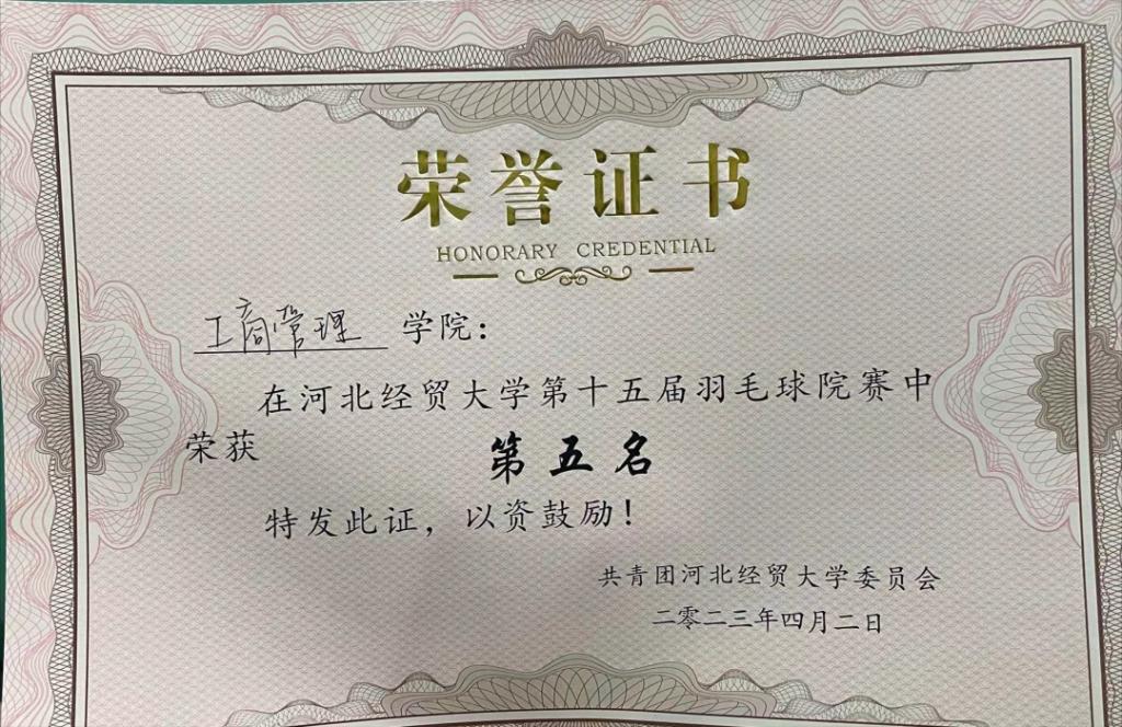 为丰富学生体育运动,提高竞技水平,增强团队凝聚力和向心力,4月1日至2日,bat365官方网站积极组织同学参加bat365官方网站羽毛球院赛。其中,由雷宇聪、王俊磊、马学治、王梦雨、韩佳轩、鲍勃涵、李昕玥五位同学组成的团队取得第五名的好成绩。