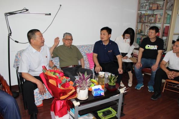 双方支部党员一行探望了离休干部柴守信,并向老人送去了鲜花和慰问品。今年93岁高龄的柴守信老人,19岁参加革命工作,在革命战争时期和和平建设年代都对党和人民的事业忠贞不渝,拼搏敬业,做出了卓越贡献。柴守信感慨地说:“我是革命洪流中的一滴水、一粒沙,做出的成绩微不足道,我始终对党无比忠诚。尽管我年事已高,但是党和国家需要的时候,我还可以挺身而出!”动情之处,老人为大家唱起了一曲他记忆中的革命歌谣。并讲述了在年幼时通过党员们编排的红色儿歌接受党的教育并积极向党组织靠拢的故事。聆听着老人的赤诚话语和动人歌声,在场同志都为之感动。