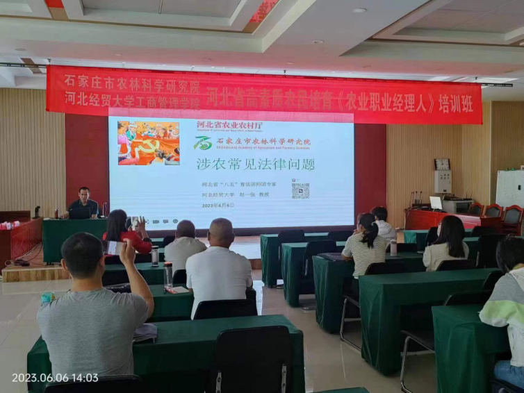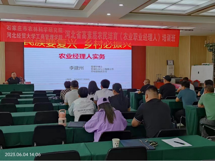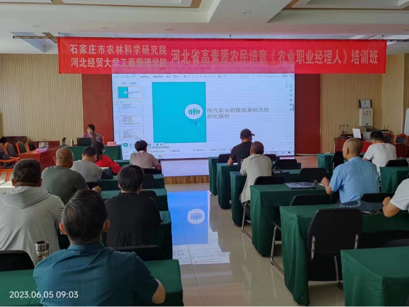 6月7日,由石家庄市农林科学研究院承办,bat365官方网站协办的河北省高素质农民培育“农业经理人”培训班第三期培训在赵县石家庄市农林科学研究院实验基地结束,标志着河北省首次培育“农业经理人”试点项目圆满完成。