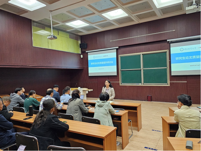 石晓飞副院长向全体导师详细解读论文质量控制办法文件。首先,着重介绍研究生论文各个环节容易出现的问题,并指出研究生论文质量是学院研究生培养的重中之重,需要导师严格要求,重点把关。其次,介绍了新增加的中期检查制度以及修改后的送审分数要求,指出各位导师要增强质量意识,夯实把关责任。最后,强调导师在研究生论文整改工作中的作用,要求导师充分发挥作为研究生培养的第一责任人的职责,严格过程管理,完善质量监督制度体系建设。