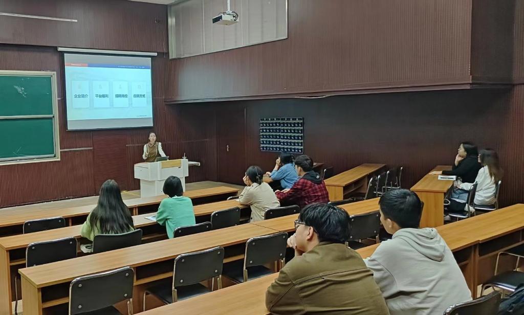 活动伊始,白少英为同学们播放了以“一起向未来”为主题的企业宣传片,以此来介绍公司的相关产品和企业竞争力,充分展现了公司光明的发展前景。随后,白少英从“企业简介、平台福利、招聘岗位、应聘方式”四个方面对公司进行详细地介绍,重点讲解了公司良好的文化环境、丰厚的员工待遇及人才需求状况,使同学们对河北旭辉电气股份有限公司有更清晰深刻的了解。最后,她与毕业生一对一交流,耐心、细致地解答学生的困惑,帮助同学们理清自己的职业规划以及发展方向。