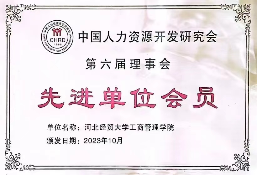 bat365官方网站荣获中国人力资源开发研究会“先进单位会员”荣誉称号。