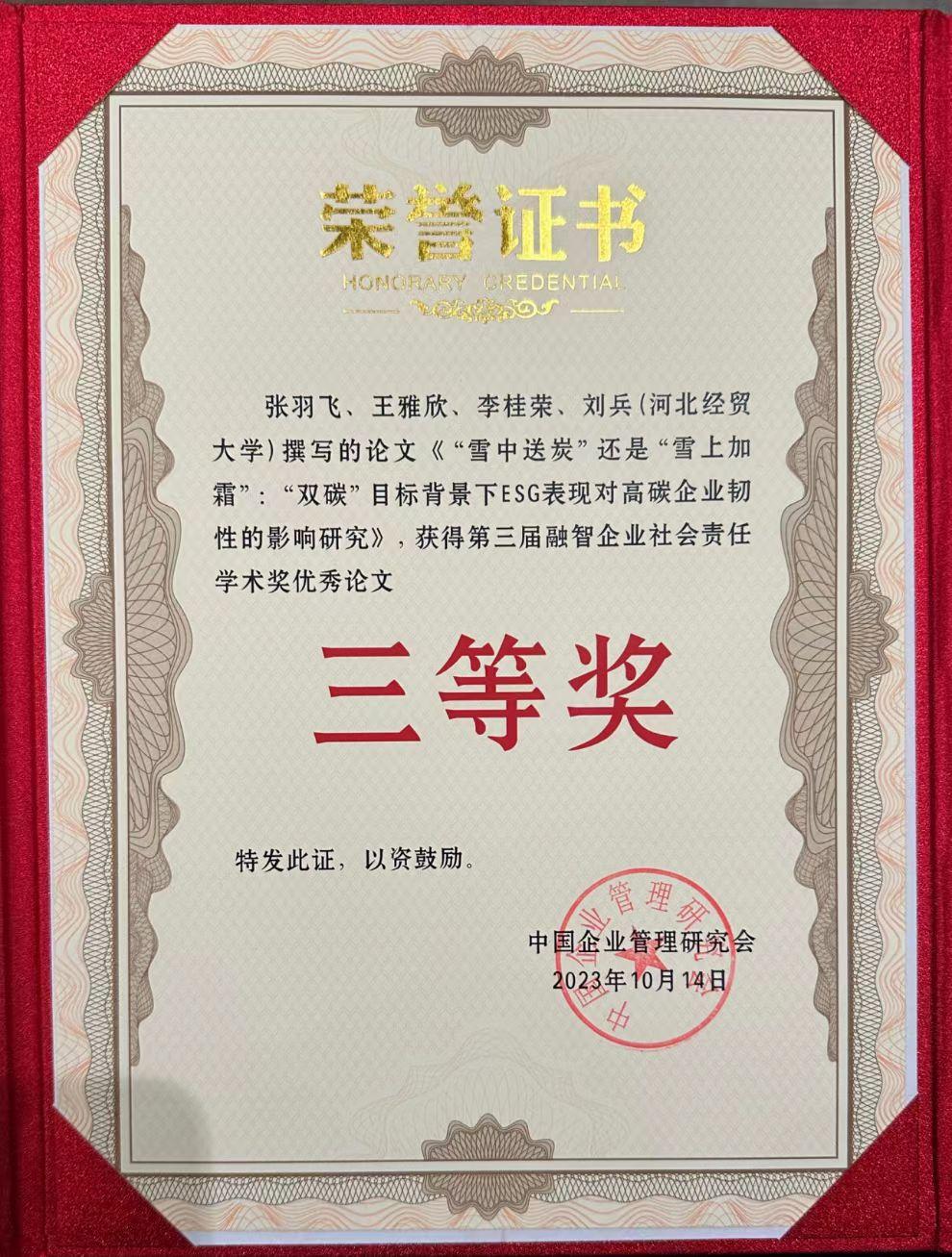 学院青年教师张羽飞博士应邀参加第五届可持续发展与企业社会责任学术论坛并获优秀论文奖。