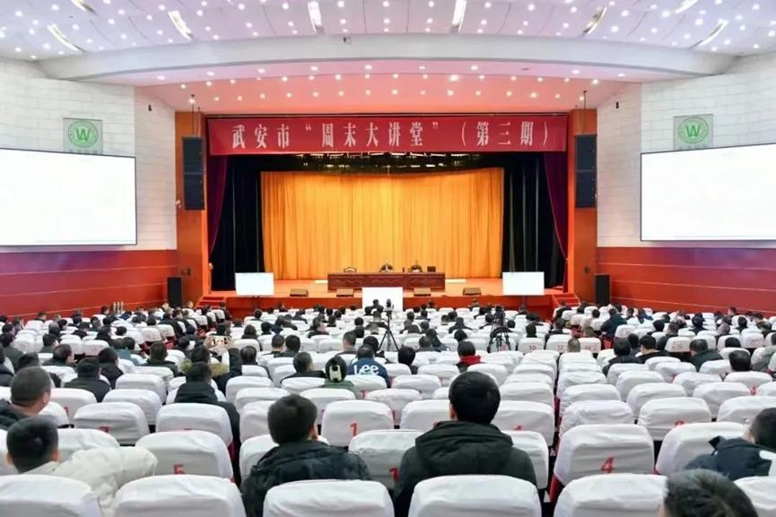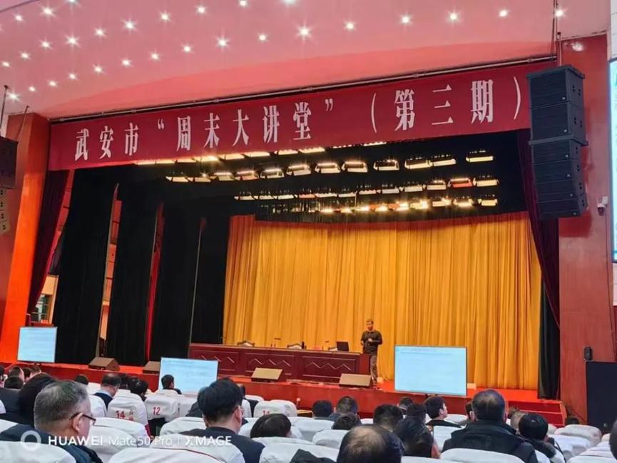 1月28日上午,武安周末大讲堂第三期开讲,bat365官方网站刘东华博士应邀授课。讲座以广电网络视频形式进行,武安市委书记刘浩峰等四套班子领导,各市直单位主要负责同志,各乡镇党委书记,工业园区党工委副书记,各相关单位中层以上干部,各重点企业负责人在武安宾馆主会场聆听讲座;各乡镇、工业园区领导班子成员和中层以上领导干部在分会场聆听讲座。武安市市长董志毅主持并讲话。