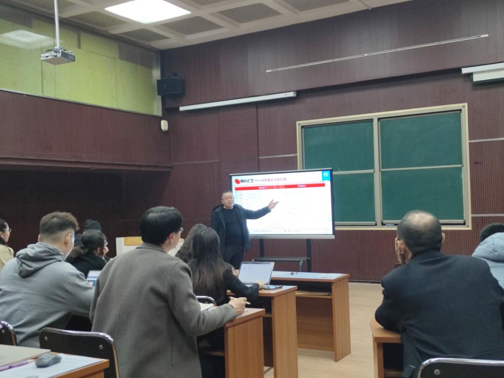 李桂荣院长首先肯定各位导师在研究生培养质量提升等方面所作的努力,强调研究生论文质量是研究生培养的重中之重。然后传达了《教育部关于深入推进学术学位与专业学位研究生教育分类发展的意见》,并结合MBA论文开题、预答辩过程中发现的问题,指出部分MBA导师一定程度上存在两类学位同质化发展现象,需深入推进研究生分类培养、分类发展,进一步提升创新人才培养质量。她强调对于MBA论文和学术学位论文应该有所区别,MBA论文应当是应用研究型,侧重于学生综合运用所学管理领域专业知识,解决企业实践中的业务与管理问题。最后,李桂荣院长从选题、类型、评价标准和格式规范等方面对MBA学位论文进行了详细讲解,并要求青年博士要加强学习,多看多交流,提升对专业硕士论文的认知和指导能力。