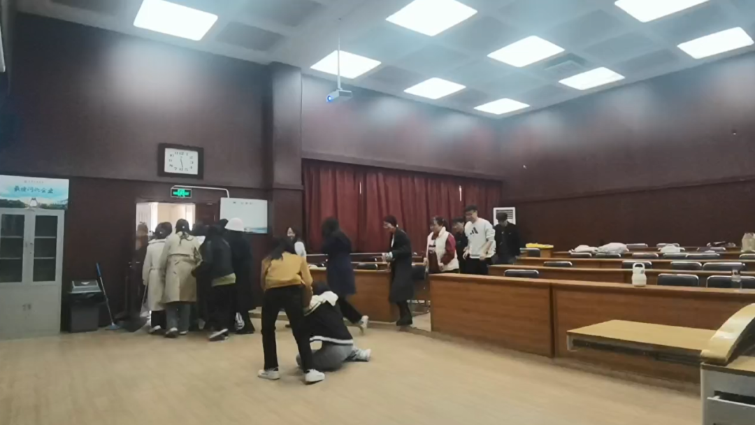 紧接着,逃生演练活动正式开始。第一次演练模拟了无预警的火灾情景,一名同学突然发出警报信号,其他同学在听到警报后迅速从教室的前后门撤离,赶往室外集合地点。全体同学在紧张而有序的氛围中完成了撤离,用时38秒。演练结束后,李建林对演练过程进行了详细复盘,指出逃生过程中出现的问题,并讨论了如何进一步提高逃生效率。紧接着进行第二次逃生演练,此次演练在第一次的基础上增加了伤员角色,考验同学们在复杂情况下的应变能力。第二次仍然模拟无预警的火灾情景,用时缩短至27秒,比第一次提高了11秒。通过两次紧张有序的演练,同学们深刻体会到了消防安全教育的重要性,并对如何在火灾等紧急情况下保护自己和他人有了更为清晰的认识。