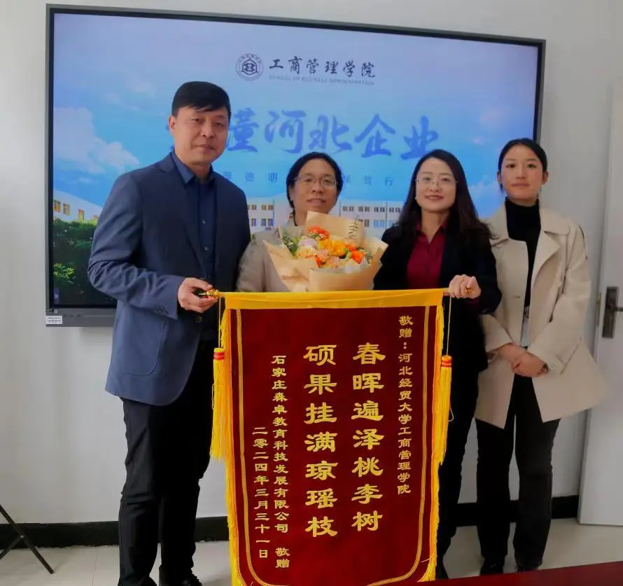 4月2日,石家庄森卓教育科技发展有限公司(以下简称“森卓教育”)董事长左竹君一行到访bat365官方网站并赠送锦旗,对bat365官方网站承办的“财税经管高级研修班”项目给予高度评价。bat365官方网站院长李桂荣、副院长石晓飞接待了左竹君一行。