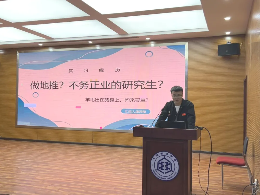 23级工商管理专业研究生张泽凯主讲了第二期实习经验分享会。在寒假期间,他担任了地推专员实习生,主要负责直接面对潜在客户进行产品宣传和销售。他最初对于地推工作的前景持保留态度,认为作为硕士研究生,自己应当从事更高层次的专业工作。然而,实际的工作经历让他领悟到,工作的价值并非仅在于其层次高低,而在于个人能否通过工作实现自我提升和职业发展。在实习中,他深入了解了市场需求和消费者心理,与客户的面对面交流使他更加直观地感受到市场的变化和趋势。通过这次实习,学会了如何与客户建立良好的关系,掌握了有效的产品推销技巧,并能够灵活处理各种突发状况。这些实际操作技能的提升,不仅增强了他的市场应对能力,也锻炼了人际交往能力。与不同背景的人交往,学会倾听和理解他人需求,以及与他人协作,这些软技能的提高对他的职业生涯有着深远的影响。