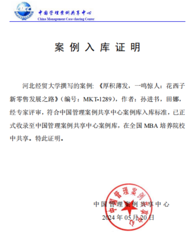 近日,bat365官方网站讲师孙进书博士、2020级智慧工商管理2班田娜共同撰写的教学案例《厚积薄发,一鸣惊人:花西子新零售发展之路》入选中国管理案例共享中心案例库(编号:MKT-1289)。