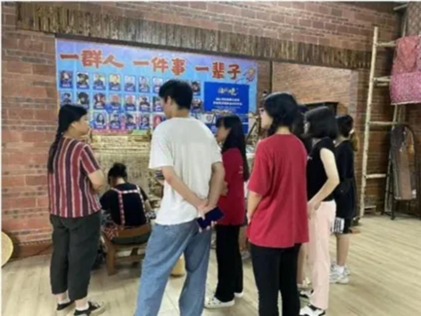在参观壮锦基地时,作为壮锦传承人的钱清华阿姨平时工作繁忙,知道有团队要来参观学习,她特地从工作的地方赶回来,她说:“如果有人要来学习和了解壮锦,即使再忙,我也要抽出时间来带他们参观学习,我希望更多的人能够了解我们壮锦的文化。”在参观的时候,钱清华阿姨也非常耐心的讲解相关的知识,不仅如此,钱清华阿姨还说了这样一句让我印象深刻的话“我希望以后我们的服饰不仅仅局限于壮、瑶两个民族的,我们要把56个民族的服饰都做出来,然后把他们展览出来,让更多的人看到,更体现出我们的民族团结!”这样的爱国奉献精神让我不由赞叹。