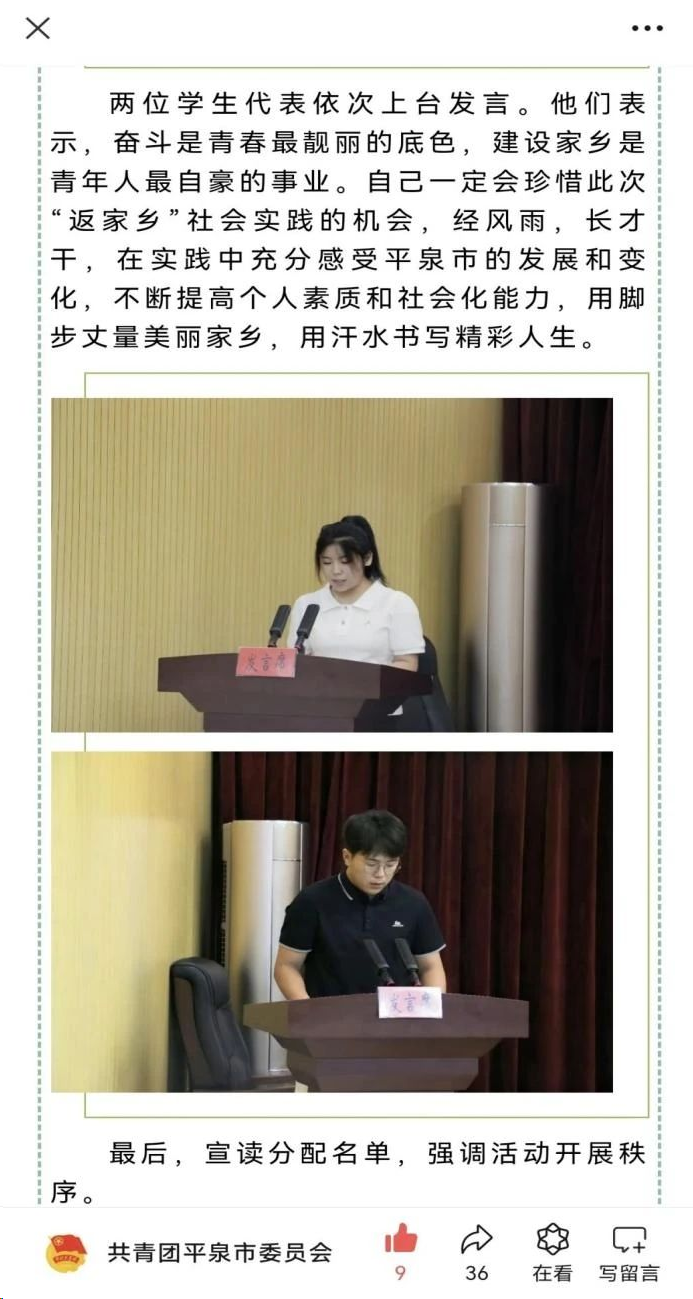 在返家乡暑期实践期间,我在做好新闻科日常工作的同时,也积极参加了团平泉市委举办的各项活动,例如“传递红色印记,传递时代新声”红色主题阅读宣讲活动、暑期返家乡研学活动、“讲七夕文化,悟传统内涵”文化讲座活动、协助组织青年夜校等等。