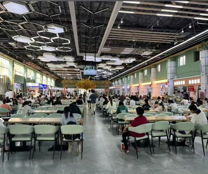 一餐全名为新高度餐厅,位于学校西边韶华路附近。一餐的菜品种类丰富,口味更符合大众需求。餐厅共有三层,三楼更适合小型聚餐,营业时间较长。一楼的东北饺子,二楼的牛肉汤、酸汤水饺、自选餐,三楼的三杯鸡、鸡公煲、小火锅,一餐南边的铁蛋刀削面等多种美食都可供同学们选择!另外,第一餐厅刚刚经过了装修改造,如今的餐厅环境充满科技感和国际化氛围,就餐环境可谓一流。