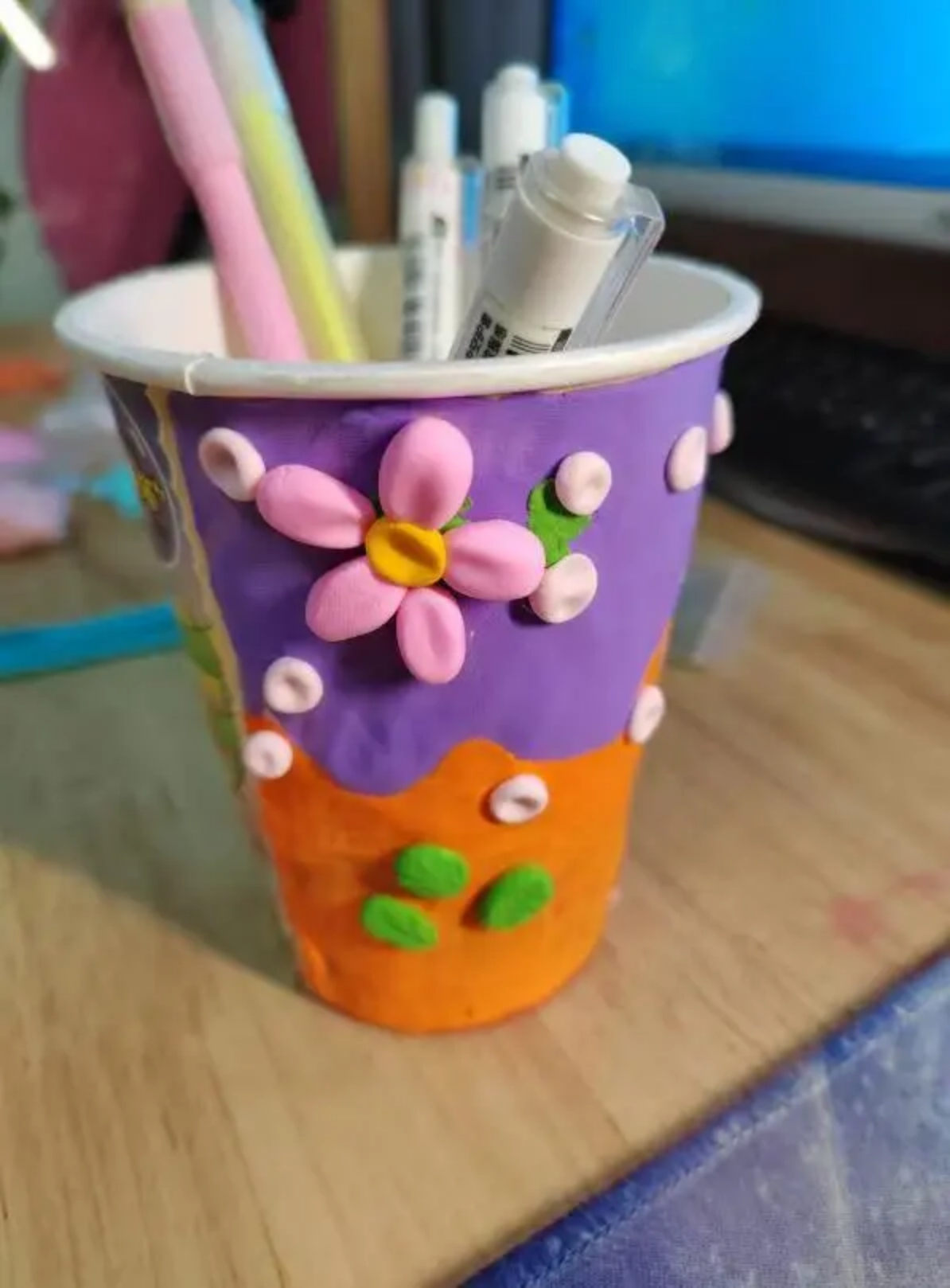 我们将用过的旧纸杯子,做成了一个好看又实用的笔筒。通过这个活动,孩子可以学习到如何将日常生活中的废弃物品重新利用,减少垃圾的产生,增强环保意识。这个过程也能够锻炼小朋友的动手能力,让他们在实践中学习如何使用剪刀、橡皮泥等工具。在制作过程中,小朋友们可以发挥自己的想象力,对纸杯进行装饰和改造,创造出独一无二的笔筒。通过将纸杯变成笔筒,小朋友们可以直观地感受到循环利用的好处,理解资源的宝贵。总之,将纸杯子做成笔筒的手工活动不仅能够教会小朋友一些实用的生活技能,还能在乐趣中培养他们的多种能力,是一种非常有意义的教育方式。