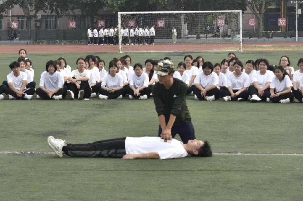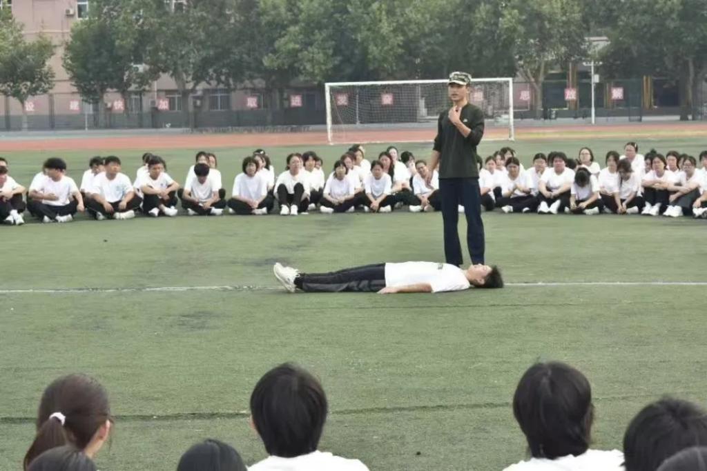 教官王富强利用自身丰富的实践经验,结合专业的急救知识,向新生们详细讲解了心肺复苏术、止血包扎、海姆立克急救法等关键急救技能。通过模拟真实场景,让新生们亲身体验急救操作的每一个步骤,确保每位同学都能在紧急情况下迅速做出正确反应。在培训过程中,学员们不仅认真聆听讲解,还积极动手实践。现场气氛热烈,学员们互相学习、互相指正,在实战中不断提升自己的急救技能。参与培训的新生们纷纷表示,这次由军训教官传授的急救知识让他们受益匪浅。“原本以为军训只是站军姿、走正步,没想到还能学到这么实用的技能。”一名新生兴奋地说,“以后遇到紧急情况,我也能从容应对了。”