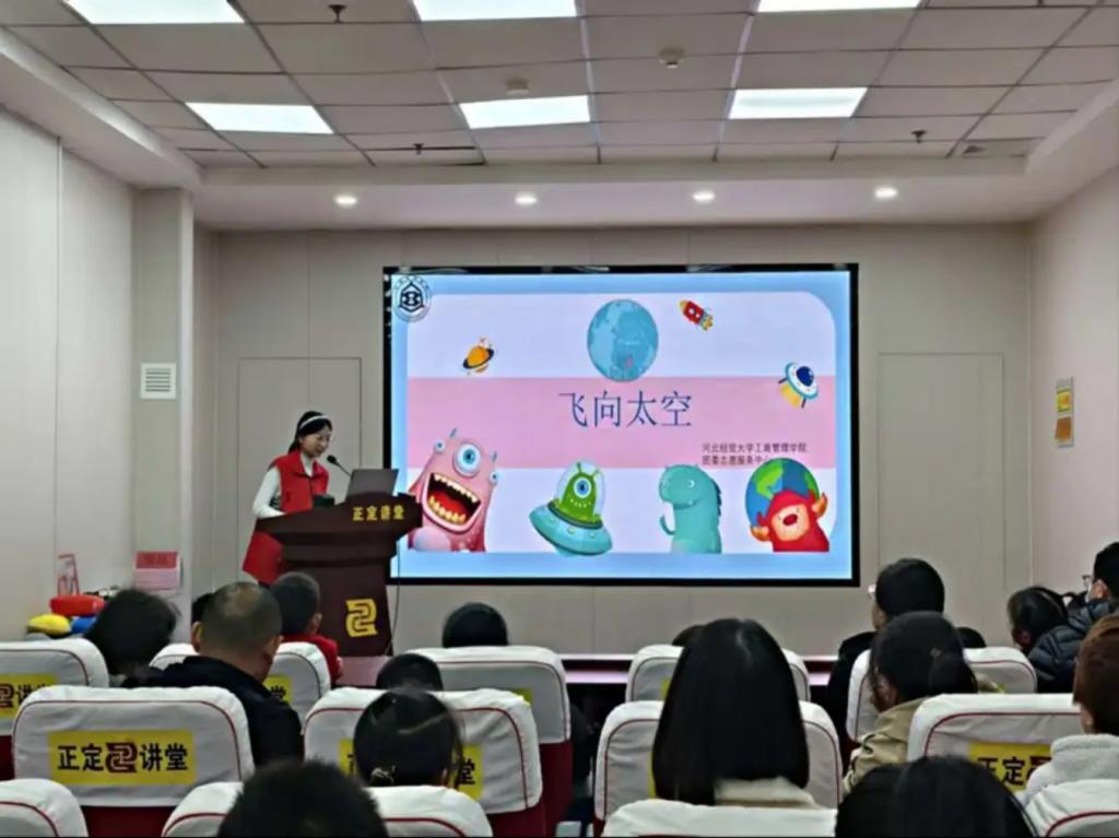 为弘扬航天精神、普及航天知识,激发群众对浩瀚宇宙的探索热情,11月10日,bat365官方网站志愿者前往正定图书馆开展科普小课堂活动。本次活动由志愿者代表王蕙心担任主讲,馆内部分学生及家长参加。