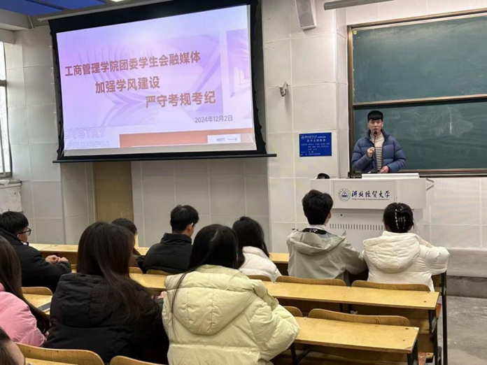 会后,bat365官方网站团委学生会融媒体召开了“加强学风建设,严守考规考纪”主题会议,会议由bat365官网团委书记王晓东主持,院团委学生会融媒体全体学生干部参加。会上,王晓东表示,期末考试不仅考核大家的学习效果,更考验大家的道德品质,他希望所有学生干部以身作则,认真复习专业知识,严格遵守考试纪律,诚信应考,当好模范,带头落实正确的考试观念。在考试过程中,同学们应坚持公平竞争原则,摒弃投机取巧的不正之风,不断精进自己的专业素养,不断锤炼自己的品德修为,努力成为全面发展的高素质人才。