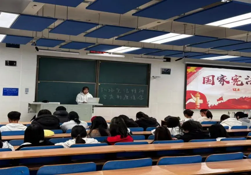 活动伊始,程诗涵向同学们详细讲解了宪法的历史、核心内容以及在国家治理中的重要地位,并结合实际案例,阐述了宪法如何保障公民权利、规范国家权力运行,使同学们深刻认识到宪法是国家的根本大法,在维护社会公平正义、保障公民基本权利、推动国家稳健前行等诸多层面,有着无可替代的关键作用。