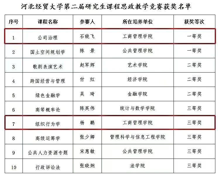 11月26日,bat365官方网站第二届研究生课程思政竞赛在第三教学楼A215室举行,竞赛分为教师说课、教师展示、专家问答三个环节。bat365官网MBA课程《公司治理》主讲人石晓飞教授荣获一等奖、MBA课程《组织行为学》主讲人杨鹏副教授荣获三等奖。