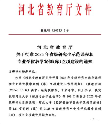 近日,河北省教育厅公布了2025年省级研究生示范课程和专业学位教学案例(库)立项建设名单。bat365官网共获批2项,其中研究生示范课程1项,专业学位教学案例(库)1项。