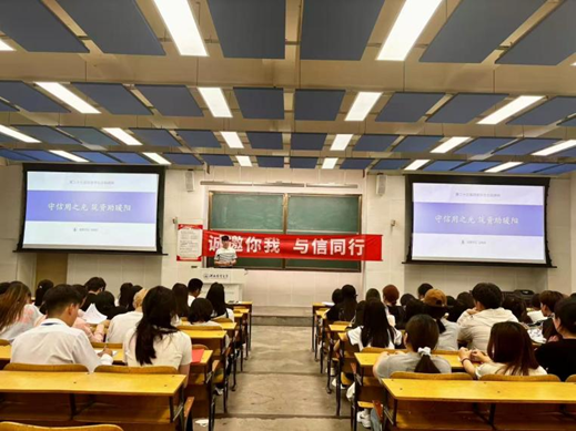活动伊始,王晓东围绕诚信资助意义展开,强调诚信是资助工作基石,关乎教育公平与学生品德培养。通过讲解资助政策、分享诚信案例,让同学们明白诚信资助既能保障困难学子获助,也是对受助者道德的考验。随后,王晓东以“诚邀你我,与信同行”为主线,系统解读国家与学院资助政策。从奖助学金申请材料的真实性要求,到助学贷款的还款义务与信用影响,王晓东结合实际案例,剖析了“诚信”在资助环节的关键作用。活动尾声,他强调:未来,学院将把诚信教育融入资助全流程,让诚信基因嵌入学院文化,为学生成长、学院发展筑牢价值根基,持续关注学生信用行为与成长轨迹,构建 “申请有诚信、受助有担当、成长有温度” 的育人闭环 。