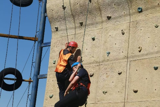 经过中午短暂的休整,25级MBA新生来到户外体验攀岩,高空挑战等项目。活动在同学们的配合下有序进行。在一次次攀登、跨越的过程中,同学们挑战自我,锻炼胆量,展现新生昂扬向上的精神风貌。随后,每组队伍进行“特殊考验”,在无声的配合中感受默契的提升。