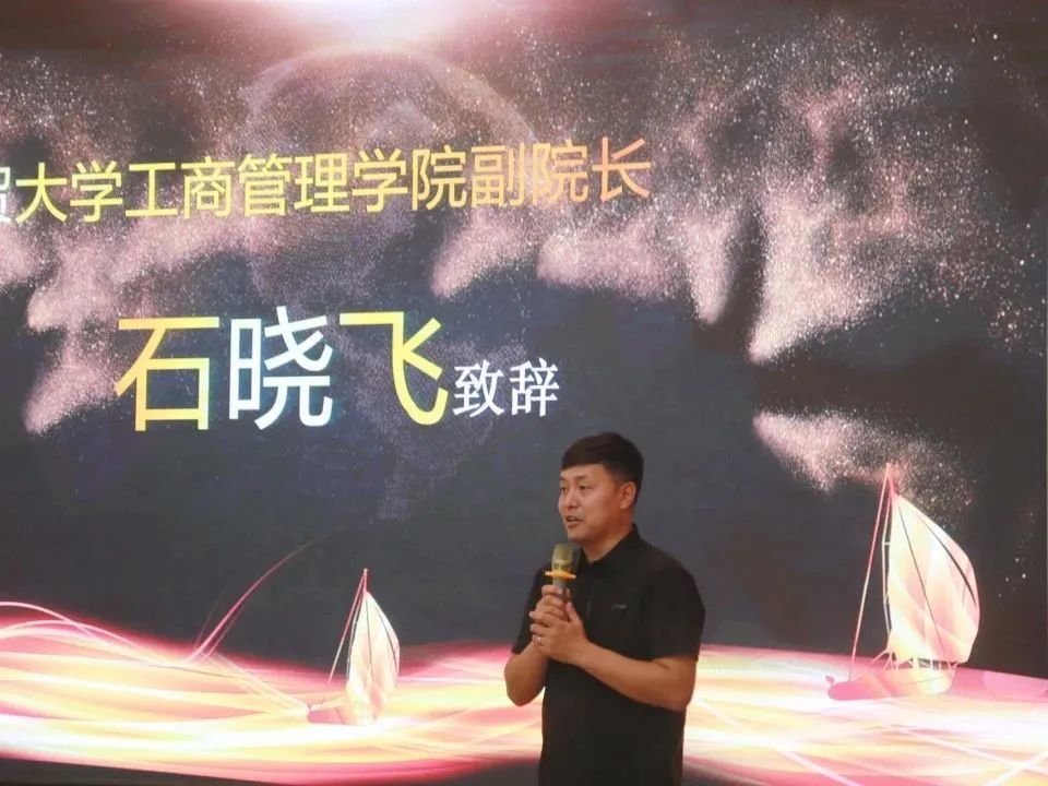 下午,MBA联合会换届仪式在多功能厅举行。首先由石晓飞副院长致辞,他肯定了历届MBA联合会的努力,并表示MBA教育中心会博采众议,助力MBA联合会为同学们组织更多更有意义的活动。他对MBA联合会的未来寄予厚望并呼吁新鲜血液的加入。随后,第十届MBA联合会主席吴太超发言致辞。吴太超学长对新生提出打开胸怀,积极参加各种活动的建议并详细解读了读MBA的意义并介绍了MBA联合会的职能、意义及目标。他祝愿第十一届MBA联合会的工作顺利展开。接着,MBA中心党支部书记赵靓丹宣读第十一届MBA联合会成员名单及职务。第十一届由MBA联合会主席宋子京,副主席陈思明、王捍朝,秘书长田志赟,创新扩展部部长李肖飞,财务部部长郝恩,外联部部长张奇,文体部部长田肖岳,宣传部部长王皓月组成。他们一一登台亮相,向同学们进行自我介绍。主席宋子京发表就职感言,他表示深感MBA联合会主席一职责任重大;第十一届MBA联合会将帮助同学们学习知识,整合资源,结交朋友,定不负信任,做出成绩。紧接着,MBA联合会会旗交接仪式举行,第十届联合会会长吴太超学长向第十一届联合会会长宋子京传递会旗。这不仅仅是职务的交接,更意味着MBA联合会责任的赓续传承。最后,张霖书记向第十届MBA联合会会长吴太超颁发主席顾问聘书,肯定其在职期间贡献。