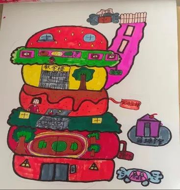 学生分享画的主角是超大型“鲸鱼校车”,它挣脱地面束缚,飘在空中。银白色与天蓝色交织的身体、背上驮着透明泡泡屋,还有喷出彩虹雾气(清洁能源)的尾巴,以及会变表情的大眼睛屏幕,每一个奇思妙想,都像灵动的音符,奏响科创的旋律。学生还描绘未来学校城市,高楼化作长满绿叶藤蔓的“大树屋”,彩色“透明管道”替代拥堵交通,地面是绿油油公园,小机器人照料发光花朵,池塘游着亮晶晶小鱼。这些画面,满是对未来学校、城市与科技融合的憧憬。