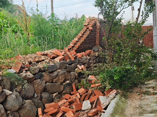 暴雨冲毁的院墙