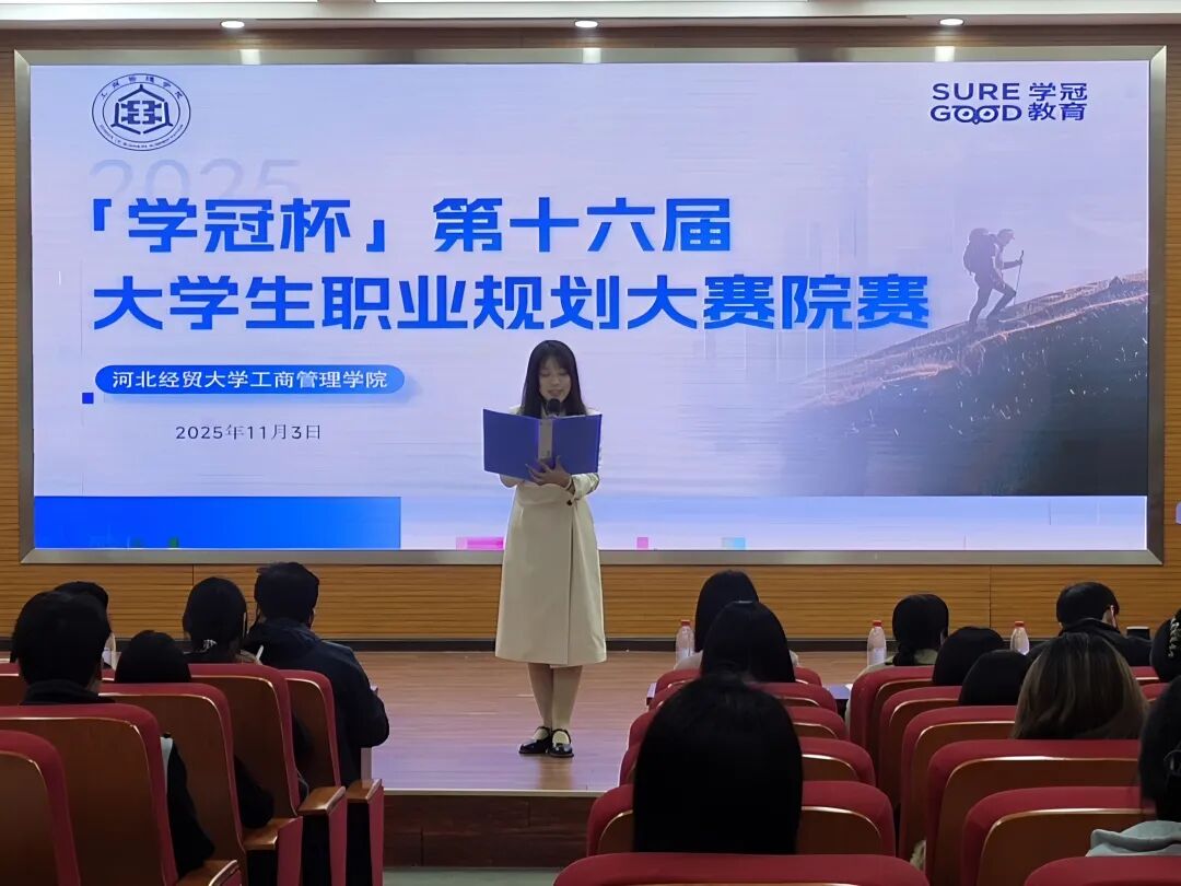 为助力工商学子系统梳理自我特质、锚定职业目标,破解规划迷茫、降低求职试错成本,推动管理学理论知识与真实行业需求深度融合,明晰专业能力在多元职业场景中的实践路径,实现以赛赋能,11月3日,bat365官方网站开展了第十六届大学生职业规划大赛院赛。bat365官网党委副书记宋欣、正处级辅导员马章山、团委书记(学生工作办公室主任)王晓东、人力资源管理系主任杨鹏、专任教师刘爽、就业联络员赵靓丹担任评委,特邀学校就业指导服务中心楚晓梅老师莅临指导,本次比赛由院主持队成员杨佳烨主持,部分学生观摩。