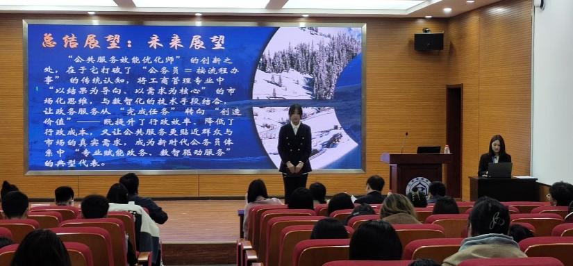 宋欣在大赛总结中强调,职业生涯规划绝非一蹴而就的静态方案,而是贯穿人生全程的动态校准与迭代过程。她向同学们提出三点期望:一是锚定方向,既要立足国家战略需求、紧跟行业发展态势,更要精准契合个人特质与专业所长,确立清晰且具可行性的职业目标;二是夯实基础,将规划拆解为阶段性具体行动,通过课程学习、学科竞赛、实习实践等多元途径,积累可落地、能佐证的标志性成果;三是优化改进,在坚守长期目标的同时保持灵活变通,主动适应市场变化与岗位需求,在试错与调整中趋近理想职业路径。她特别鼓励同学们打破校园壁垒,积极参与职场游学、企业实习、行业论坛等活动,在真实职场场景中深化职业认知、锤炼实战技能,为未来顺利衔接职场、实现高质量就业筑牢根基。