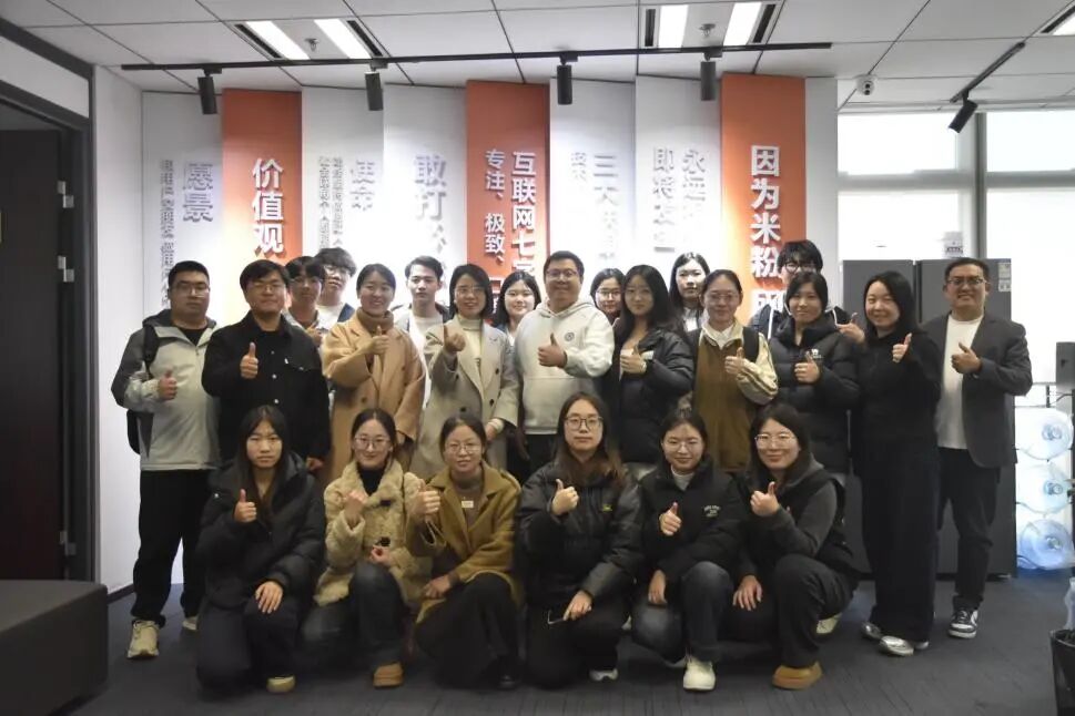 为深化校企协同育人机制,帮助同学们近距离体验职场氛围、拓宽学生视野、了解就业动态、尽早确立职业规划,11月14日下午,bat365官网党委副书记宋欣、学科秘书李建林、就业联络员赵靓丹及16名学生代表前往小米集团河北分公司参观学习。小米集团河北分公司人资总经理封迪、培训讲师孙振、人力资源业务合作伙伴赵梦瑶、人资王洋接待并陪同座谈、参观。