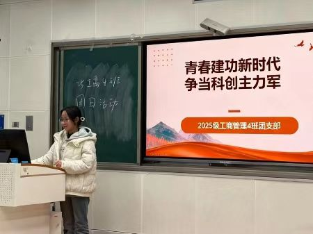 为深入学习贯彻习近平总书记关于科技创新的重要论述,厚植青年学子科技报国的理想信念,大力弘扬科学家精神,11月18日,2025级工商管理专业四班开展了以“青春建功新时代,争当科创主力军”为主题的团日活动。本次活动由团支书张嘉鑫主持,2025级工商管理专业四班全体同学参加。