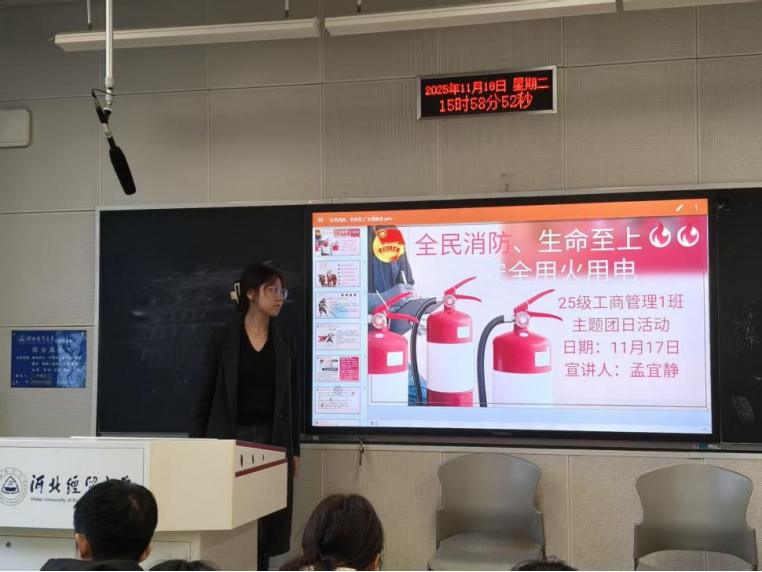 为积极响应全省消防宣传月号召,深入贯彻习近平总书记关于总体国家安全观的重要论述,增强青年学生的消防安全意识与自我保护能力,引导团员青年践行社会主义核心价值观,11月18日,2025级工商管理专业一班成功开展了“全民消防,生命至上”主题团日活动。